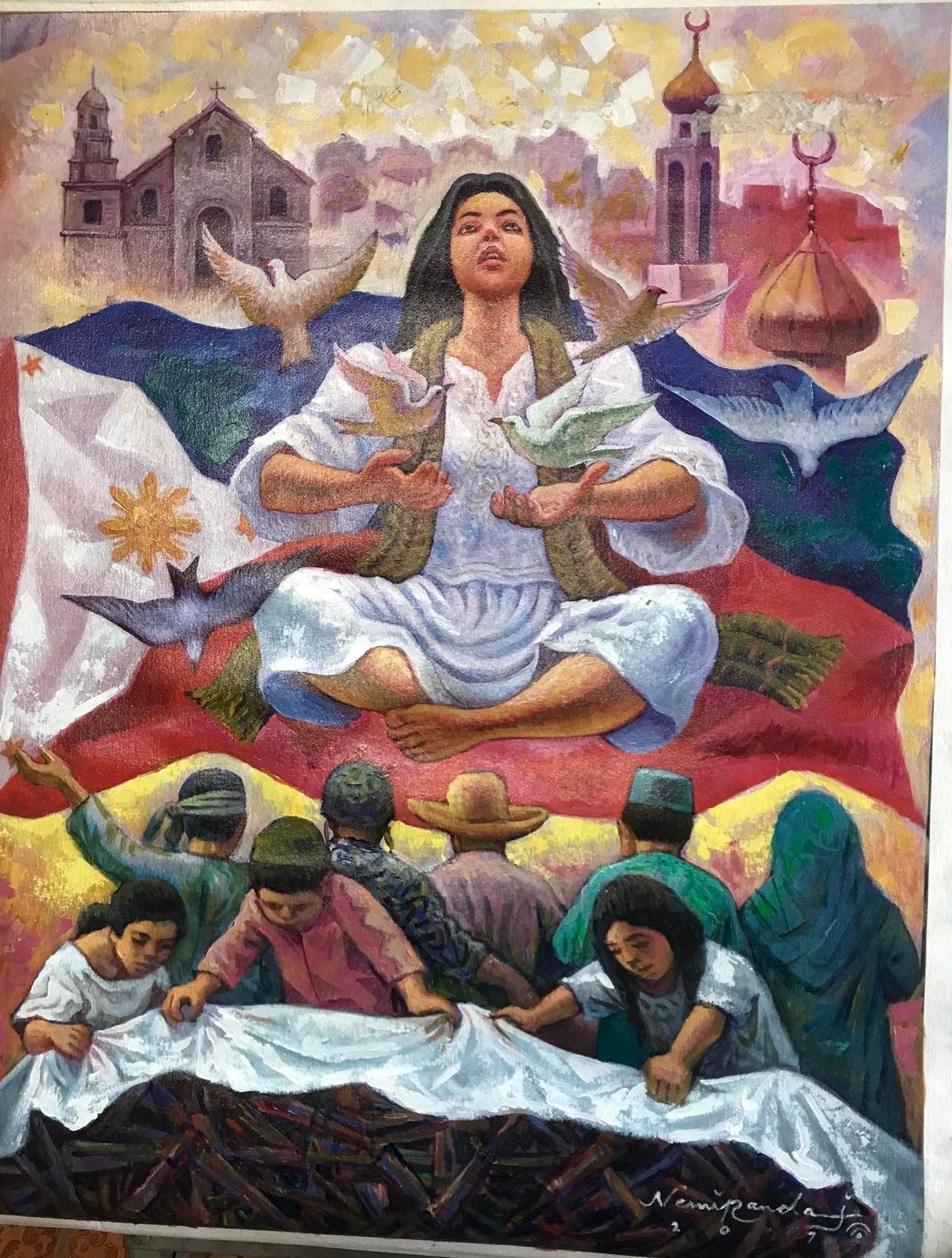 In cooperation with the Roman Catholic Archbishop of Manila, Eagle Eye Charities is celebrating 500 Years of Christianity and ts 5th Anniversary with a global art competition, with grand exhibition at Manila Cathedral on Feb. 20, 2023. "Gifting of Sto Niño to Juana" by Jun Impas